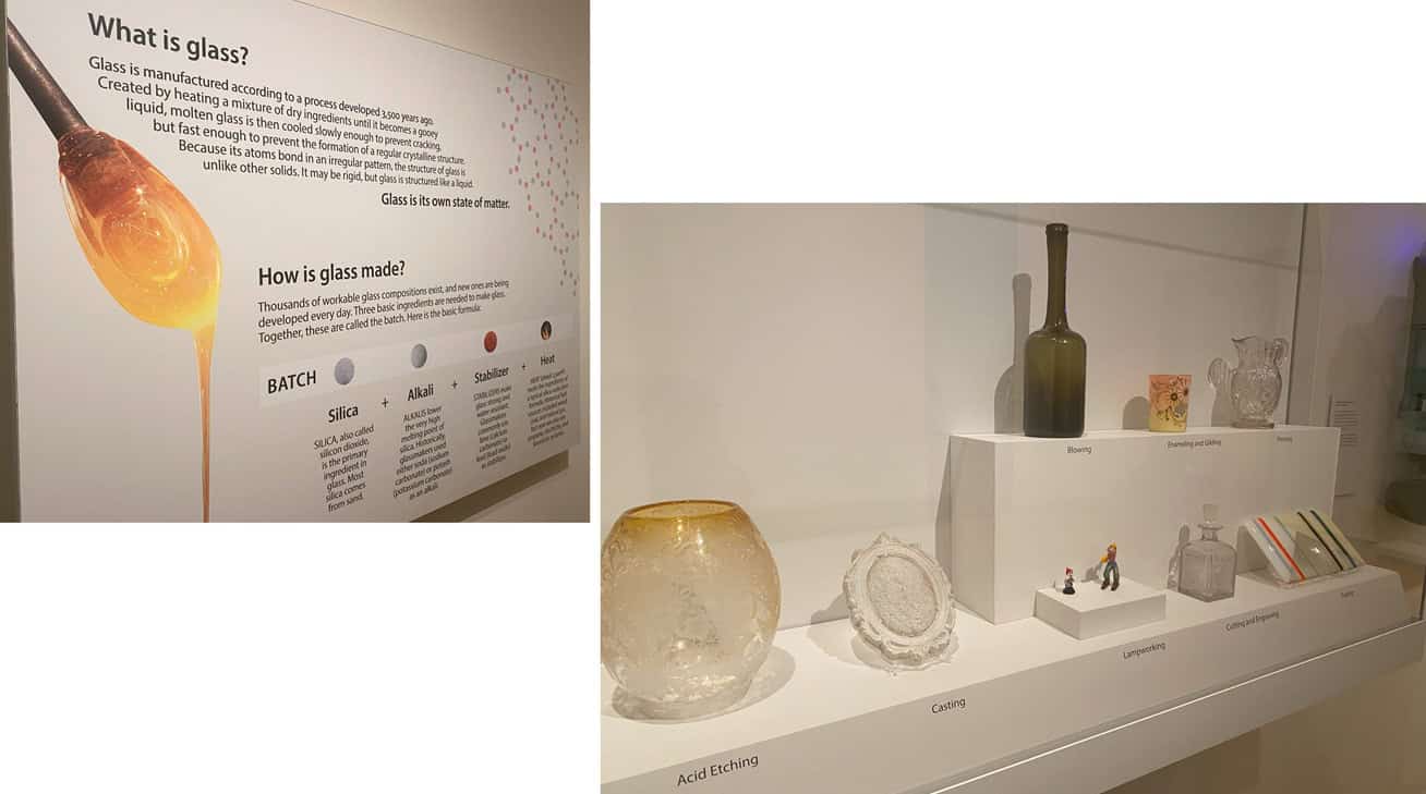 Besides all of the fabulous glass in this the Chrysler Museum of Art is they had a couple of educational displays about glass including how glass is made, some types of glass including acid etching, casting, flameworking, blowing, gilding, pressed, fusing, stain glass, reverse painting, enameling, cutting, and more.