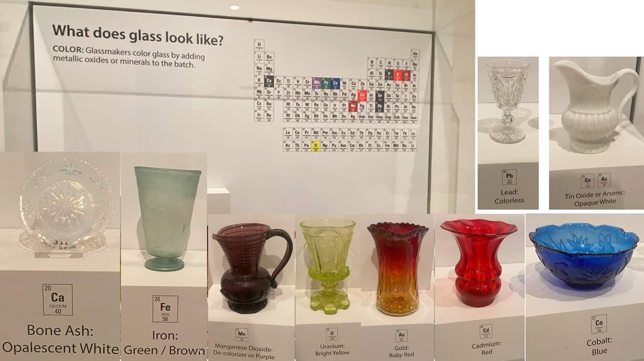 This is one of my favor educational displays - how the color of glass is made (albeit I've been taught purple glass is also made with gold.