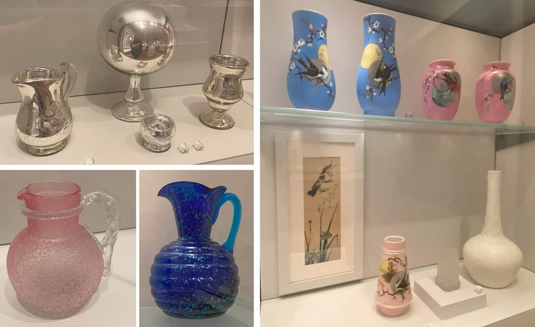 Here is some mirrored glass, enameled glass vases and the two on the bottom left are just gorgeous!