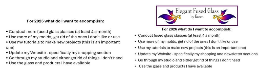 At the start of each year, I set creative and business goals for my fused glass work. In my first blog post (and often in a Did You Know feature), I look back to evaluate those goals and reflect on my progress. I entered 2025 with the same goals as the previous year, and this review highlights how I did, what worked, and how my glass activities grew and changed throughout the year.