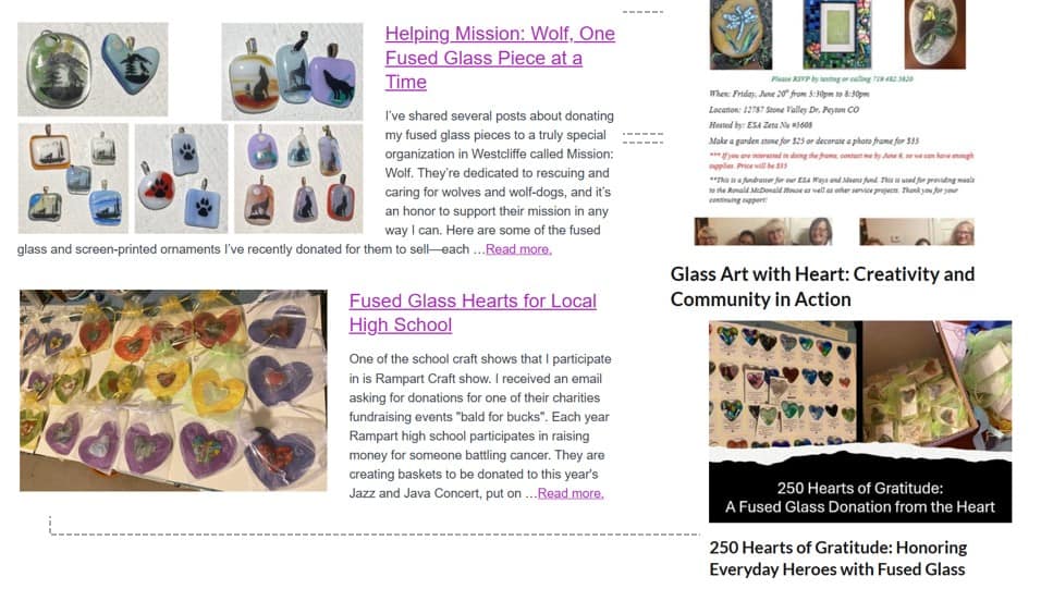 Another goal that’s especially close to my heart is increasing my donations. This year, I was fortunate to donate fused glass hearts to several organizations, contribute a variety of pieces to Mission: Wolf, and supported other causes along the way. Giving back through my glass brings me a deep sense of joy and purpose. Knowing that my work can help support organizations doing meaningful work is one of the most rewarding parts of what I do. As I look ahead, I’ d love to continue—and grow—this part of my journey. If there’s an organization that’s meaningful to you and could benefit from a donation, please feel free to reach out and let me know. I’m always happy to help when I can.