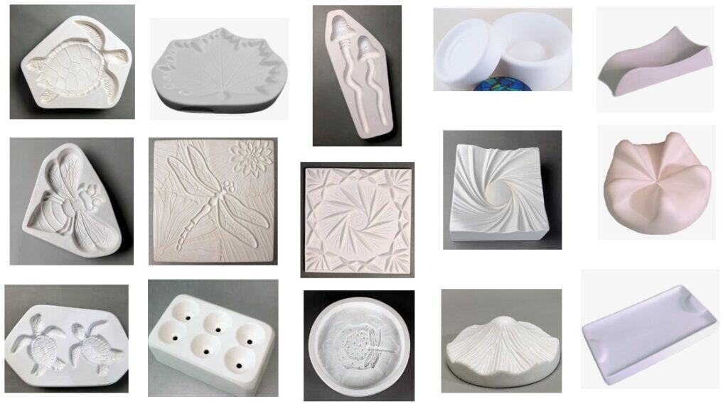 My second goal last year was to use more of my molds—and while I did make progress, I’ll be the first to admit I didn’t use nearly as many as I should have. I did pull out a few favorites (shown at the bottom), but my mold collection still has a lot of untapped potential waiting in the studio. Rather than seeing that as a miss, I decided to turn it into a plan. I’ll select 24 molds and committed to using at least two each month. The mix includes casting molds, slumping molds, and texture molds, which should keep things interesting and push me to experiment in new ways. I’m genuinely excited about this goal. These molds open the door to new shapes, surfaces, and ideas—and I can’t wait to see how they influence my future pieces and classes. Below is a look at some of the molds I’ll be working with.