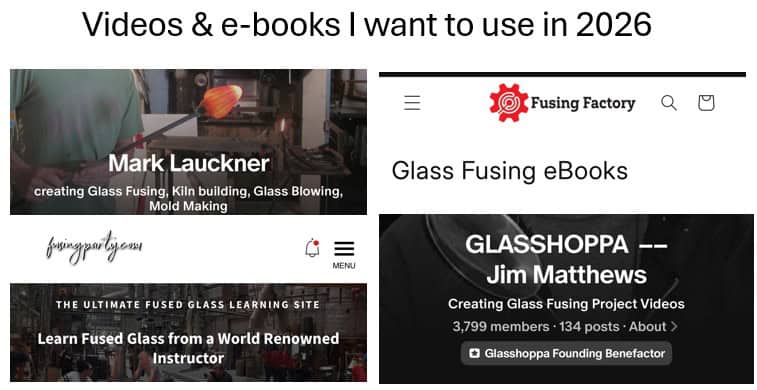 My third goal last year was to use more of my tutorials to create new projects—and I’ll be honest, this is one I didn’t do very well. Like many of us, I collected tutorials with the best intentions… and then got busy actually making glass. Instead of letting that feel like a failure, I decided to reset the goal in a way that feels achievable and exciting. This coming year, I’m committing to one tutorial per month. Just one. Enough to stretch my creativity without overwhelming myself. I recently spent hours revisiting some of my tutorials, and it completely reignited my excitement. There are so many inspiring projects out there, especially from artists I truly admire—like Tanya Veit from AAE Glass (I absolutely love her energy and teaching style), Glasshoppa with his wide range of creative projects, Mark Lauckner, whose work and tutorials are always inspiring, and of course the incredible e-books from Fusing Factory. Spending time with these videos and tutorials reminded me why I fell in love with fused glass in the first place—learning, experimenting, and trying something new or in many cases reminding myself of a project I’ve done in the past.