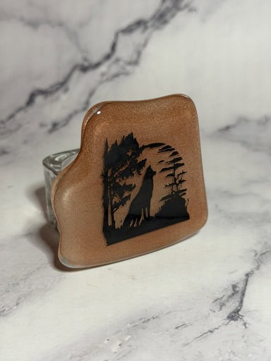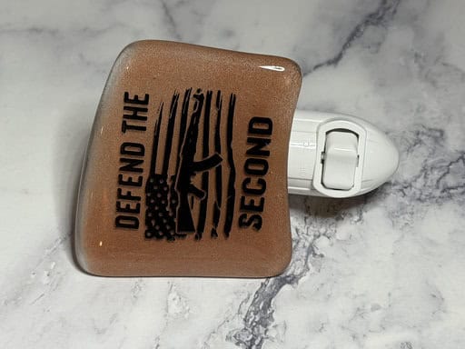 Because this copper glass has such a beautiful transparent quality, I knew it would be perfect for nightlights—and it did not disappoint! I created three of them: the first features a “Dad” decal, the middle one showcases a screen-printed wolf, and the third is a screen-printed “Defend the 2nd.” The warm glow of the copper glass gives each one a rich, rustic look, and they make wonderful gifts—especially for husbands, dads, or anyone who appreciates a bold and meaningful design.