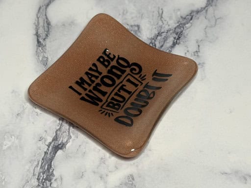 Well, I finally got around to creating new pieces from this gorgeous copper plate, and I’m thrilled with how they turned out. Here are two little 3-inch dishes—just the right size for ring holders, teaspoon rests, tea bag holders, or any small treasures you want to keep close. The dish on the left features a screen-printed design, while the one on the right was made with a kiln-fired decal. Both came out beautifully with perfect firing schedules, and each one shows off that rich copper reaction that made me fall in love with this glass in the first place.