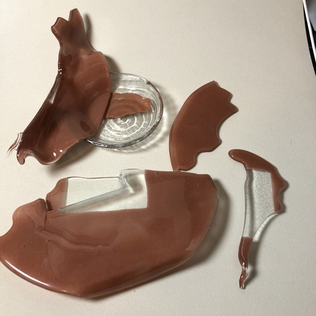 Well, years ago, I created a copper-painted plate for a restaurant, and I was so excited about how it was coming together. But during the final firing, one of the plates broke in the kiln. At first, I was disappointed (we’ve all been there!), but that moment became an important reminder of something magical: in fused glass, a break isn’t always an ending. Sometimes it’s the beginning of an entirely new creative journey.
