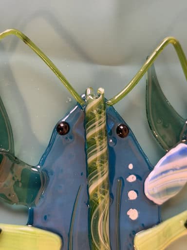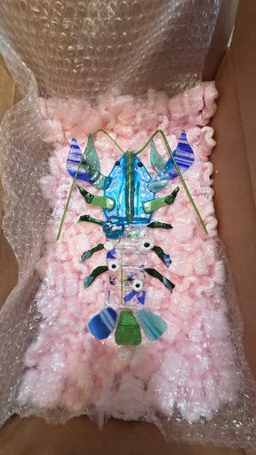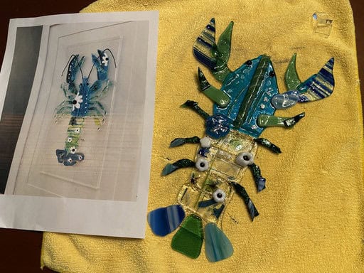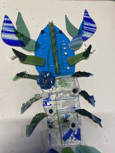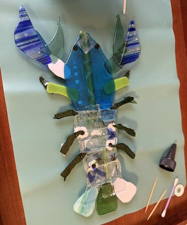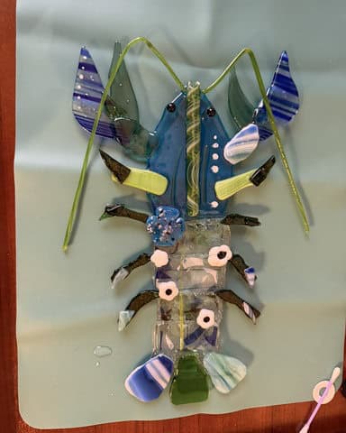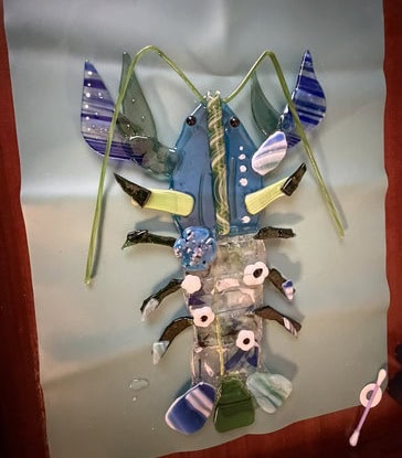 To make her lobster even more lifelike, Kim wanted to add antennae. I suggested UV resin as the best way to secure them so they’d stay three-dimensional instead of being fused flat, and she was all in. For shaping, she used a simple candle instead of the crème brûlée torch—much safer, though it does leave a little residue behind. It worked beautifully, and with the antennae in place, Bob truly came to life. When it was time to pack him up, I was so happy to see everything held together perfectly—Bob made it home safe and sound. I can’t wait to see him once he’s framed; I know he’s going to be a stunning centerpiece and a real testament to Kim’s incredible talent and vision.