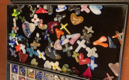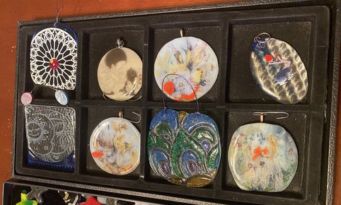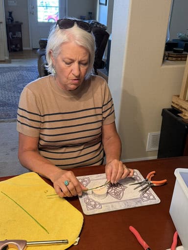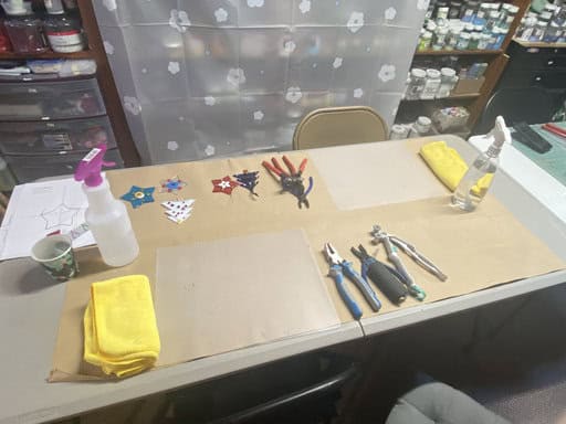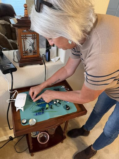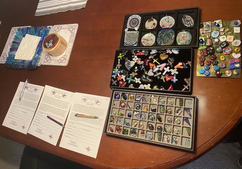 What a fun class this was! Three ladies joined me, each tackling a project that was a little on the challenging side. Like every class, we started with the basics—safety reminders and liability forms—before moving on to one of my favorite parts: handing out free gifts. Students got to choose from suncatchers, pocket crosses, pocket hearts, pendants, and magnets. I love this tradition, because it’s a simple way to show my appreciation for those who spend their time creating with me in my home studio.
