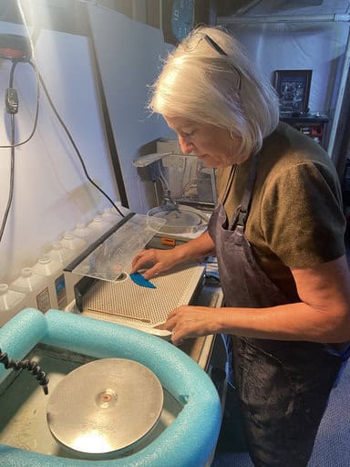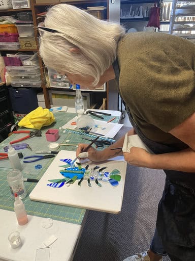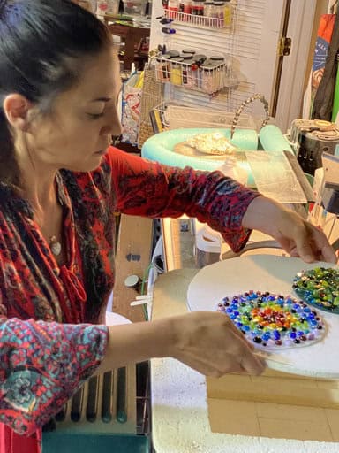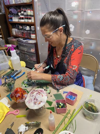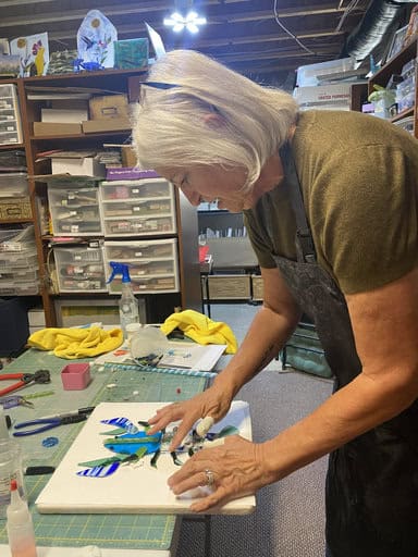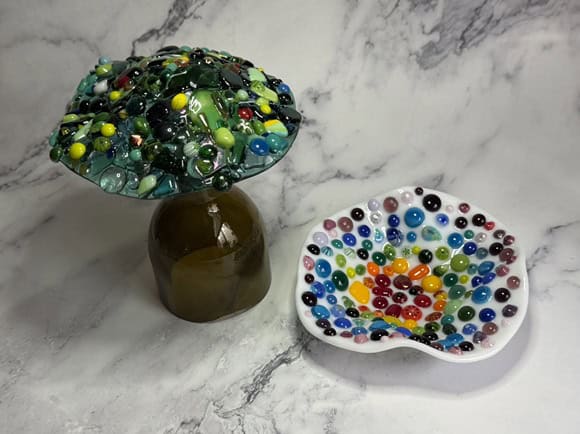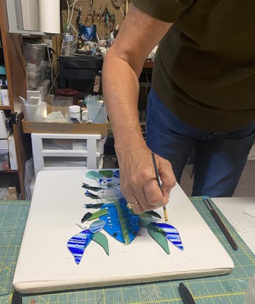 Watching Tara’s mushrooms, Vanessa’s colorful bowl, and Kim’s incredible “Bob the Lobster” come to life reminded me exactly why I love teaching. Every class is a balance—sometimes students are brand new, like Tara, while others are experienced and eager to take on advanced projects, like Vanessa and Kim. That mix keeps my studio alive with creativity. I truly enjoy guiding beginners through their first creations just as much as I enjoy helping advanced students push the limits of what’s possible. No matter your level, there’s always something new to explore in fused glass, and I’d love for you to join me on that journey. If you’d like to experience the magic of fused glass for yourself, reach out to schedule your own class by emailing me at elegantfusedglass@gmail.com or visit my website at www.ElegantFusedGlassbyKaren.com.