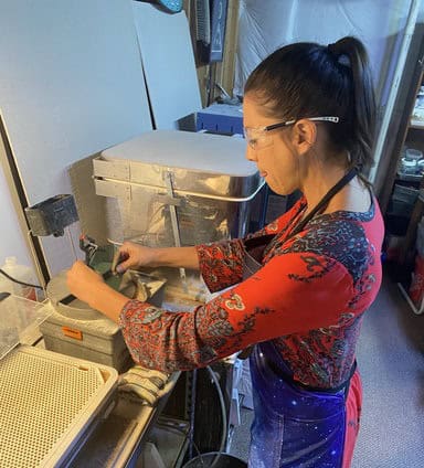 While Kim and Vanessa were already familiar with my studio, Tara was brand new to fusing, so I gave her a tour of the glass spaces.
