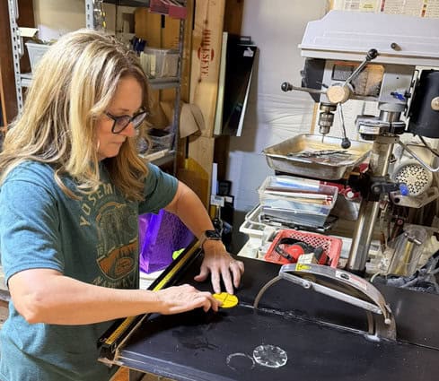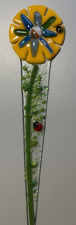 Anita also chose to make a plant stake — but she decided to get a little adventurous. And by a little, I mean she went for it. She used the circle cutter, the grinder, and even the saw! That’s no small thing, especially in your first class. The circle cutter takes patience and a steady firm hand. The grinder requires confidence. And the saw? Well… that’s when you know someone is ready to level up. She did a fabulous job and created a beautiful flower plant stake with wonderful dimension and personality. You could see her excitement grow with each step — especially when the shapes started coming together exactly as she envisioned. There’s something so satisfying about watching a student realize, “I can do this.” By the end, she wasn’t just following instructions — she was creating with intention. And that flower plant stake? It’s absolutely lovely and completely her.