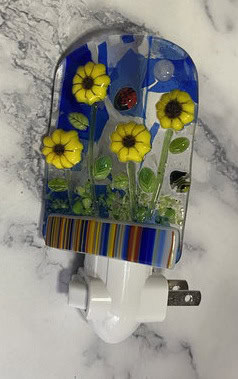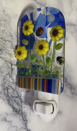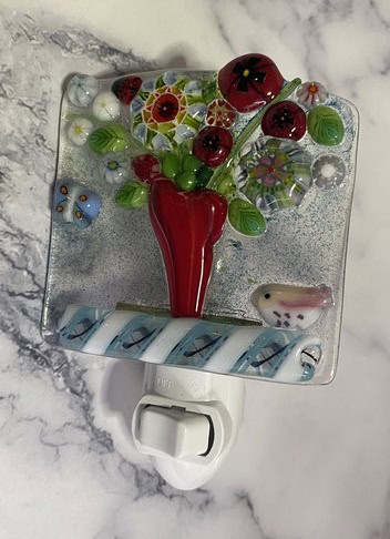 This class was such a wonderful mix of new students and seasoned fusers, each bringing their own creativity and ideas into the studio. From night lights to garden art to coral vases, the variety of projects reminded me just how versatile fused glass can be. I love seeing students push themselves, try new techniques, and leave with something meaningful—whether it’s a finished piece or a lesson learned for the next one. My classes are designed to give students the chance to explore, learn, and create something that’s entirely their own. If you’d like to try fused glass for yourself, I’d love to have you join me in the studio!