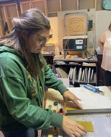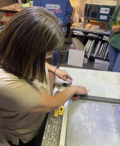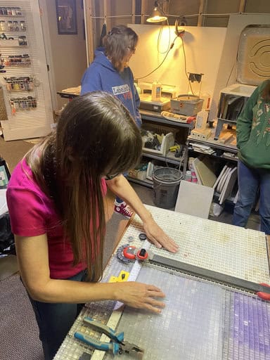 This class was particularly meaningful to me because all of the ladies are special needs moms. That connection resonates deeply, and it made our time together even more special. Like every class, we started with a quick review of safety requirements and liability forms, and then I gave them a choice of free gifts including magnets, pendants, pocket hearts & crosses, as well as suncatchers as my way of saying thank you for coming to the studio.
