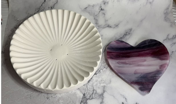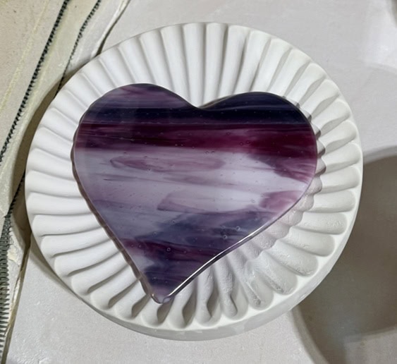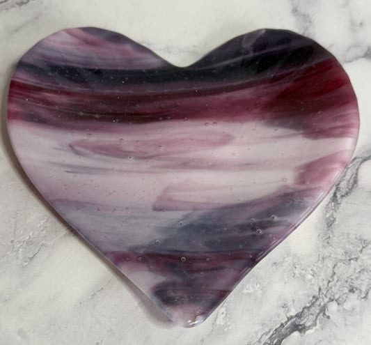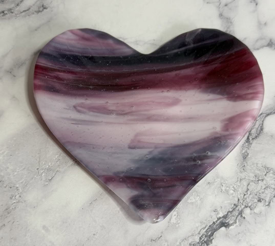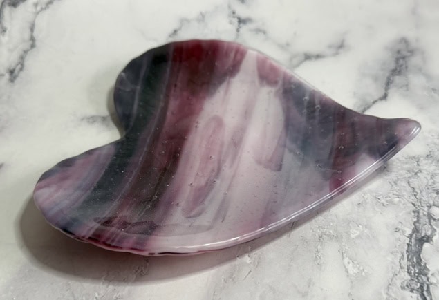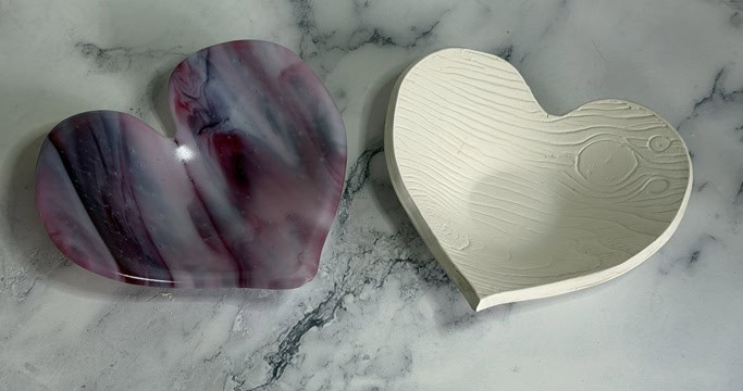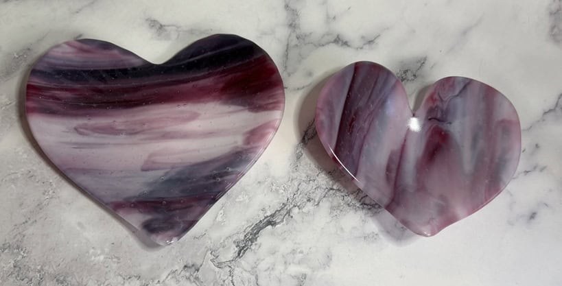 I love how these two pink heart dishes turned out—especially how the same glass can create such different results. Each piece has its own personality, shaped not just by the glass, but by the mold and the process. They’re fully food safe (hand wash only), so they can be used to serve a special dessert or simply enjoyed as decorative pieces. Either way, they’re meant to be shared and enjoyed. I’d love to hear what you think.