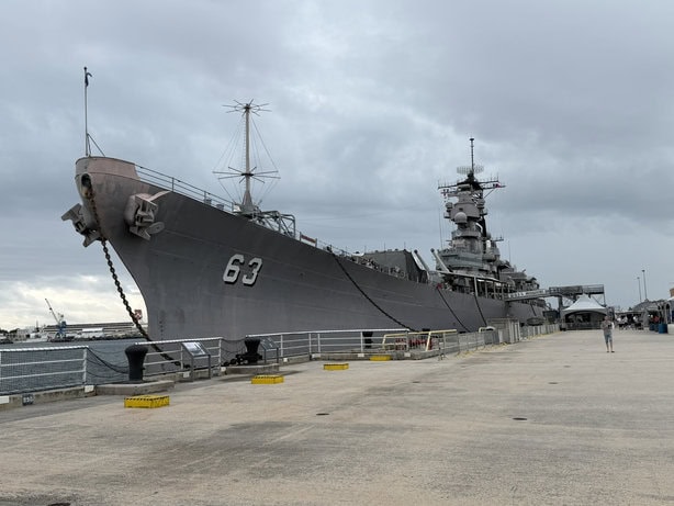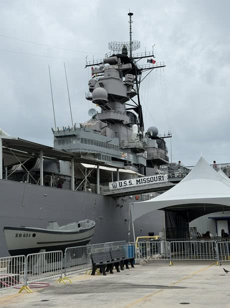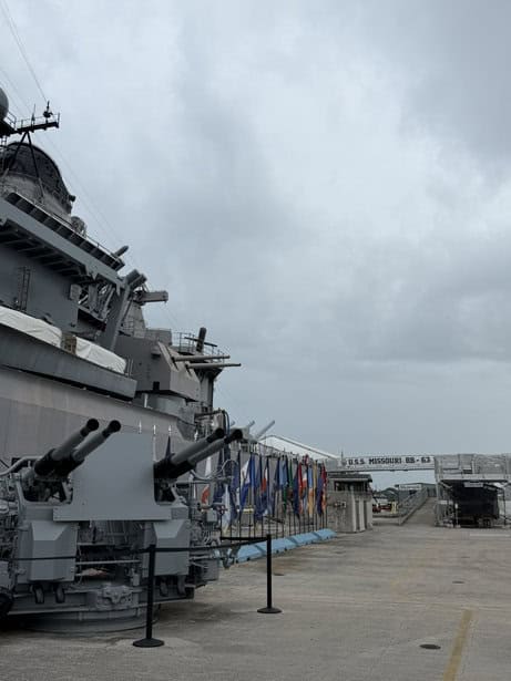 We did get to have a quick lunch near the USS Missouri—the “Mighty Mo”—which was an incredible experience, even in a short amount of time. Docked at Pearl Harbor, right across from the USS Arizona Memorial. The Missouri was the last battleship built by the United States and is best known as the site where Japan officially surrendered in 1945, bringing World War II to an end. Even though we were only there briefly, just being on the ship and seeing the Arizona Memorial in the distance really puts things into perspective.