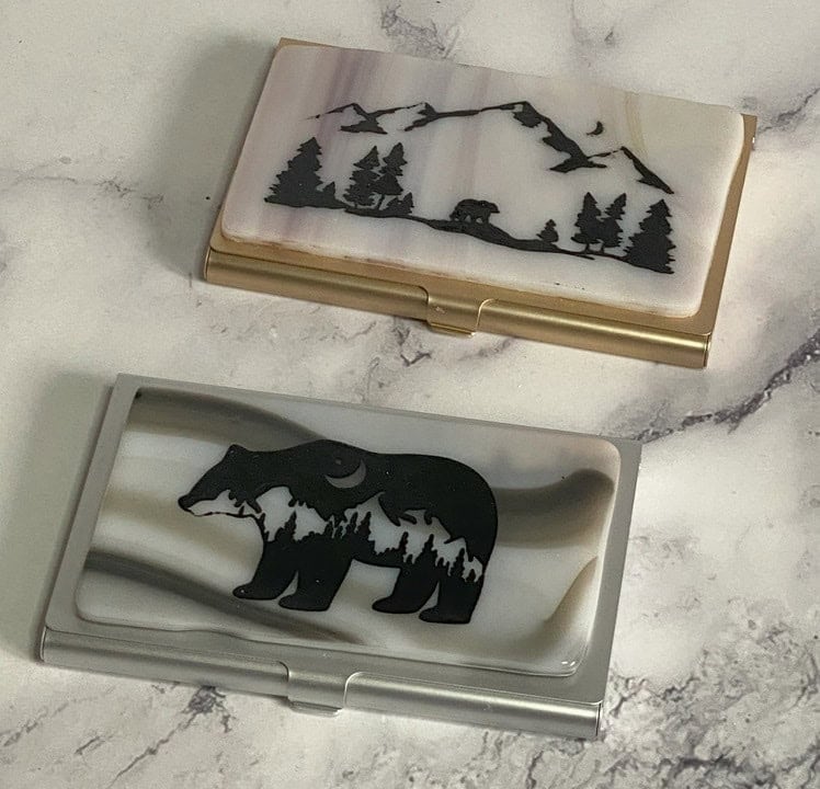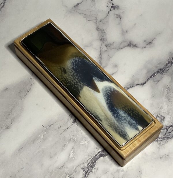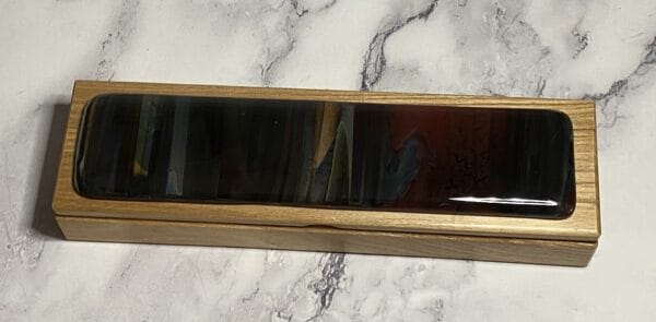 One thing about being a fused glass artist — you start seeing opportunities to add glass to just about everything. I love incorporating glass into everyday objects like mirrors, nail files, spoons, business card holders, and anything else I can think of. It’s a fun way to turn something ordinary into something unique and artistic. Sometimes an item only needs a small piece of glass to completely change its look and give it a little personality. Here are just a couple examples of things I’ve added glass to recently.